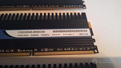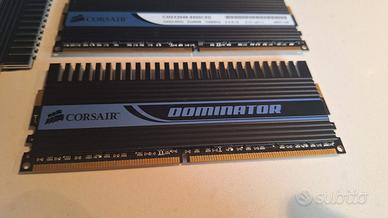 Vendo 4 moduli di RAM Corsair Dominator XMS2 DDR2, ciascuno da 2GB, per un totale di 8GB.