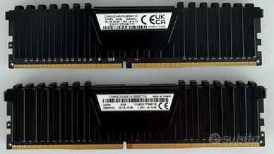 Vendo RAM Corsair Vengeance LPX da 16GB (2 x 8GB) DDR4 2666MHz CL16, perfettamente funzionante, smontato da PC desktop per upgrade. Memorie molto affidabili e performanti, ideali per gaming, lavoro, editing e multitasking. Il design low profile (LPX) permette la compatibilità anche con dissipatori CPU di grandi dimensioni. Caratteristiche principali: - Marca: Corsair - Modello: Vengeance LPX - Capacità totale: 16GB (2x8GB) - Tipo: DDR4 - Frequenza: 2666 MHz - Latenza: CL16 - Formato: DIMM per PC desktop - Supporto XMP Le RAM sono sempre state utilizzate in ambiente domestico e non hanno mai dato problemi. Condizioni: ottime. I due banchi di ram da 8GB sono stati acquistati singolarmente e non appartenevano ad un kit. Per informazioni o altre foto contattatemi pure.