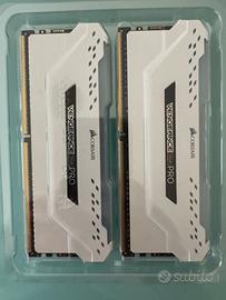 Della Corsair mod. Vengeance RGB Pro (colore bianco) vendo quattro moduli di memoria RAM da 8gb ciascuno. La velocità è di 3.600 MHz Il tutto è conservato da manuale come si può vedere dalle fotografie.