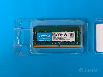 RAM Crucial da 16GB DDR4 (modello CT16G4SFRA32A), ideale per potenziare laptop, mini PC o sistemi compatti. La memoria è in condizioni impeccabili, testata e perfettamente funzionante. Capacità: 16 GB Tecnologia: DDR4-3200 (PC4-25600) Formato: SODIMM (260-pin) Velocità: 3200 MT/s Latenza: CL22 Tensione: 1.2V Compatibilità: Universale con sistemi che supportano DDR4 SODIMM (Intel e AMD). Upgrade ideale per eliminare i rallentamenti nel multitasking, editing video o gaming. Installazione immediata plug-and-play. CONTROLLA ALTRI MIEI ANNUNCI SUL PROFILO