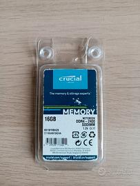 Vendo blocco di RAM della Crucial da 16GB versione DDR4 SODIMM da 2400Mhz oggetto in ottime condizioni (pari al nuovo) nella sua confezione originale
