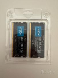 Vendo RAM Crucial 48GB DDR5 5600MHz modello CT2K24G56C46S5, composta da 2 moduli da 24GB SO-DIMM per laptop e mini PC compatibili. Perfetta per upgrade di notebook gaming, workstation portatili, mini PC e laptop ad alte prestazioni. • Caratteristiche •Capacità totale: 48GB (2x24GB) • Tipo: DDR5 SO-DIMM •Frequenza: 5600 MHz • Latenza: CL46 • Voltaggio: 1.1V • Marca: Crucial / Micron RAM perfettamente funzionante, ideale per aumentare prestazioni in gaming, editing video, programmazione, virtual machine e multitasking. Possibile spedizione o consegna a mano. RAM DDR5, Crucial RAM, 48GB RAM laptop, DDR5 5600MHz, SO-DIMM DDR5, RAM notebook, RAM gaming laptop, upgrade laptop RAM, memoria DDR5 notebook, RAM workstation portatile, RAM mini PC, Micron RAM.