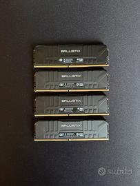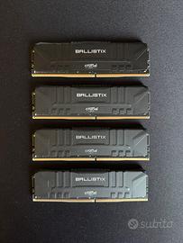 Vendo per passaggio a nuovo pc 4 banchi RAM da 8Gb Crucial Ballistix BL2K8G36C16U4B da 3600MHz. Le RAM sono in ottime condizioni e perfettamente funzionanti. Mai eseguito Overclocking.