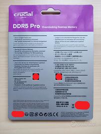 in vendita due moduli RAM Crucial Pro DDR5 (2x16) Intel XMP 3.0/AMD EXPO ancora nuove sigillate, mai aperte.