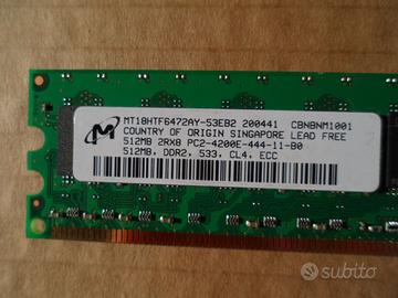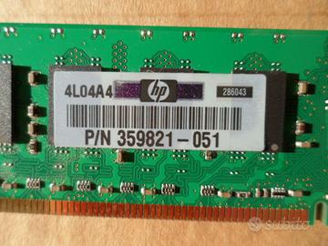 RAM DDR 2 PC2 4200 533 MHz ECC 1 GB (2x512 MB) 2 banchi di memoria RAM DDR-2 PC2-4200 533 MHz ECC da 512 MB ciascuno Provenienza desktop HP Solo vendita in blocco A quanto mi risulta, la RAM proviene da un computer funzionante ma poichè non ho la possibilità di testarlo, l'articolo è da intendersi offerto "così come sta".