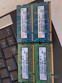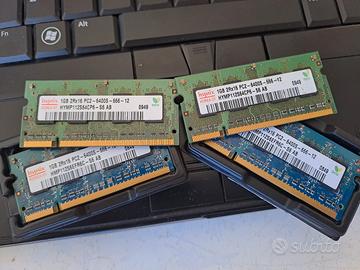 lotto di 4 ram per notebook tipo DDR2 marca Hynix ognuna di 1 GByte (totale 4 GB). Prezzo relativo all'intero lotto. Memorie tolte da computer funzionanti per motivi di espansione. Verificare la compatibilità con il vostro computer.