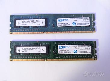 Vendo 2 banchi di RAM ddr3 da 4gb l'uno (totale 8) con frequenza 1600mhz Marca SPECTEK