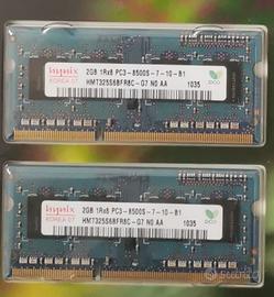 Ram DDR3 2 Banchi x 2GB Tot 4 GB PC3-8500S