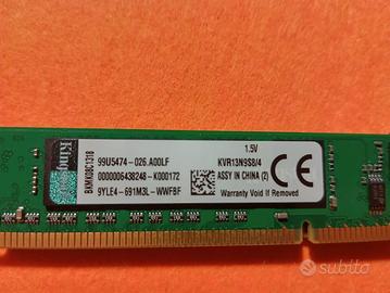 1- Kingston KVR 2GB DDR3 1333MHz PC3-10600 RAM Memory Stick KVR1333D3N9/2G 1.5 V € 15 pz.3 2- KVR13N9S8/4 DDR3-1333MHz Kingston 4GB PC3-10600 CL9 240-Pin DIMM 1.5 V € 18 pz.2 vendo ram come da foto testate e funzionanti prezzi da concordare
