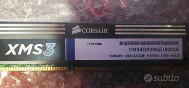 RAM DDR3 Corsair XMS3 – 8GB Totali (4x2GB – 1600MHz) Vendo kit di memorie Corsair XMS3 DDR3 per PC desktop, 8GB totali, composto da 4 moduli da 2GB ciascuno: 4x Corsair XMS3 CMX4GX3M2A1600C9 – DDR3, 1600MHz Caratteristiche principali: Formato: DIMM DDR3 da 240 pin Frequenza: 1600MHz Capacità totale: 8GB (4x2GB) Compatibili con la maggior parte delle schede madri DDR3 Condizioni: tolte da PC perfettamente funzionante, testate e pronte all’uso. Ottime per aggiornare o ridare vita a PC desktop con memoria DDR3.