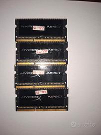 RAM per notebook DDR3 HyperX Impact 1866Mhz 4x8Gb, perfettamente funzionanti