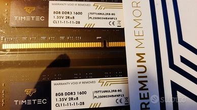 VENDESI KIT RAM DDR3 16Gb (8G X 2) 1600MHz CL 11-11-11-28 NUOVE ANCORA SIGGILATI - NON SPEDISCO - NON AFFARISTI O PERDITEMPO - PREZZO 50 EURO NON TRATTO - CONTATTO 3807974258
