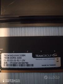 Vendo 2 banchi di ram ddr4 3200 mhz TEAM ELITE da 16 gb ciascuno (32 gb totali) perfettamente funzionanti quasi nuovi appena smontati dal mio pc da gaming.....vendo per passaggio a ddr5
