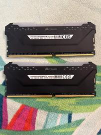 Kit di due moduli di RAM Corsair Vengeance Pro RGB. - Capacità totale: 32GB (2x16GB) - Tipo: DDR4 - Frequenza: 3600MHz - Latenza: CL18 - Illuminazione RGB