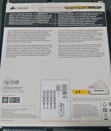 Kit di ram ddr4 Corsair Vengeance RGB PRO. Il kit è composto da quattro banchi da 8 gb di ram, frequenza massima di lavoro 3200 mhz.