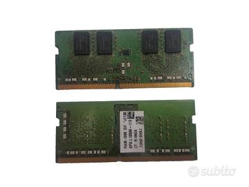 Per qualsiasi domanda contattatemi, risponderò quanto prima! RAM DDR4 marca SK hynix totali 8Gb (2 moduli da 4Gb) velocità 3200Mhz e 2133Mhz, formato SO-DIMM per laptop - notebook - portatili. Modelli HMA451S6AFR8N e HMA851S6CJR6N. Testati e perfettamente funzionante senza alcun difetto. Per ulteriori dettagli visualizzare la foto dell'inserzione (spedito come da foto). Condizioni quasi pari al nuovo. Spedizione veloce e sicura con tutte le accortezze del caso. Servizi di spedizione con Tuttosubito, veloce, sicura e tracciata.