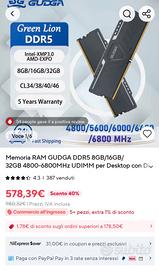 RAM di brand GUDGA, popolarissime sul sito Aliexpress. DDR5 6000MHZ CL48 Mai aperte, 100% nuove, 5 anni di garanzia, acquistate a gennaio 2025. Tra le foto potete notare l'annuncio odierno sul sito Aliexpress, e una conversazione che ho avuto su WhatsApp con l'azienda stessa la quale è molto disponibile a fornire assistenza.