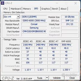 RAM DDR5 Corsair Vengeance RGB 32GB (2x16) 6000MT/s CL40 usato, testato (memtest86) e perfettamente funzionante sprovvisto di scatola originale Identificatori Prodotto -Codice Prodotto (MPN): CMH32GX5M2B6000C40 -Serie: VENGEANCE RGB DDR5 Prestazioni e Capacità -Capacità Totale: 32 GB (2 x 16 GB) -Tipo di Memoria: DDR5 -Formato: UDIMM (288-pin) -Velocità Testata: 6000 MT/s (PC5-48000) -Latenza Testata: 40-40-40-77 -Voltaggio Testata: 1.35 V -Profilo: Intel XMP -Settimana di produzione: 24/2023 (Cpu-z) -Gestione Energetica: Overclock PMIC -Illuminazione: LED RGB -Dissipatore: Alluminio Compatibilità certificata produttore Sistemi: Intel 600 Series, Intel 700 Series, Intel 800 Series Prezzo NON trattabile SOLO scambio a mano Non scambio con nulla