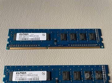 2GB 1Rx8 PC3 10600U-9-10-A0 - ELPIDA EBJ20UF8BCF0-DJ-F 2 pezzi da 2GB Frequenza 1333 MHz