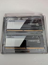 Kit di memoria G.Skill Trident Z Neo ad alte prestazioni, equipaggiato con chip SK Hynix (tra i migliori produttori di memorie al mondo), ideale per gaming, workstation e PC enthusiast. Memorie perfettamente funzionanti, stabili e affidabili, condizione pari al nuovo. Vendo per inutilizzo. Specifiche: Capacità totale: 32GB (2×16GB) Tipo: DDR4 Frequenza: 3600 MHz Latenza: 16-19-19-39-58 Profili XMP 2.0 per configurazione immediata Chip SK Hynix Dissipatore in alluminio RGB integrato (compatibile con i principali software di gestione) Ottima compatibilità AMD e Intel