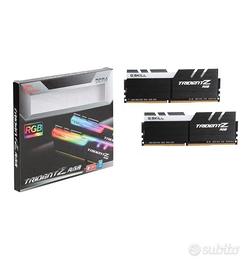 Kit di memorie RAM G.Skill Trident Z RGB. - Capacità totale: 16GB - Velocità: 3200MHz - Tipo: DDR4 - Illuminazione RGB personalizzabile