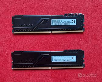 Vendo 2 moduli RAM DDR4 da 8GB Kingston HyperX Fury con DISSIPATORE per un totale di 16GB (modello ACR26D4U9S8ME-8X). Perfettamente funzionante, testato e pronto all’uso. -------------------------------- NOTA: Il prezzo si riferisce a singolo banco di ram da 8GB. Se acquistati entrambi il prezzo è leggermente scontato. --------------------------------- Specifiche tecniche del singolo modulo: -Capacità: 8GB -Tipo: DDR4 UDIMM (desktop) -Frequenza: 2666 MHz (PC4-21300) -Formato: 288 pin -Voltaggio: 1.2V -Non ECC -Unbuffered Vendo per upgrade PC.