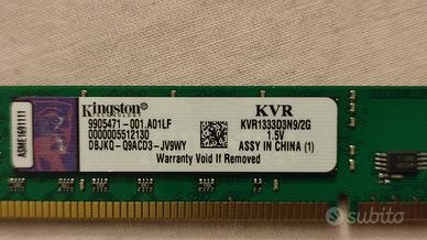 3 banchi di RAM DDR3 240 pin perfettamente funzionanti: 2 banchi KVR1333D3N9/2G 2GB 2Rx8 256M x 64-Bit PC3-10600 CL9 240-Pin DIMM DDR3-1333 Euro 10,00 cadauno 1 banco KVR16N11S8/4 4GB 1Rx8 512M x 64-Bit PC3-12800 CL11 240-Pin DIMM DDR3-1600 Euro 10,00 Acquisto in blocco 25,00.