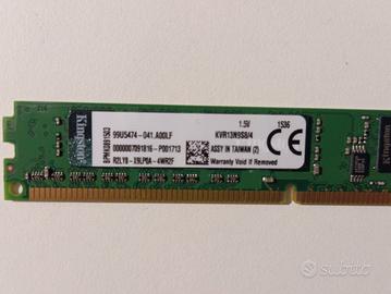 perfettamente funzionante, rimossa da PC funzionante. Modello esatto: Kingston KVR13N9S8/4 Tipo: DDR3 Capacità: 4GB Frequenza: 1600MHz Tensione: 1.5V Formato: DIMM per PC fissi Stato estetico: ottimo, nessun difetto. Nota: etichetta originale presente, mai overclockata. Testata prima della vendita.