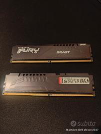 vendo due banchi di ram kingston fury beast 2x16gb, totale 32 gb 6000mt/s. in perfetto stato, vendo perche ho disassemblato il pc