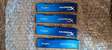 Vendo 4 banchi di RAM Kingston Hyperx Fury Blue specifiche tecniche come da foto.