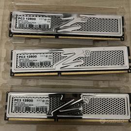 Si vende kit OCZ3P1600LV6GK composto da tre moduli DDR3 PC3-12800 da 2 GB (3x2GB totale 6GB di RAM) usati in ottime condizioni, operanti a 1600MHZ a Cas 7-7-7-24 1T, tensione di 1,65V. Il kit in esame appartiene alla famiglia High Performance PC3 12800 con dissipatore di alluminio della sere Platinum XTC.
