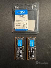 Vendo Kit Crucial da 32GB (2x16GB) DDR5 di tipo SO-DIMM (Notebook & Laptop) con velocità massima di 5600 Mhz.