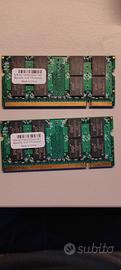 vendo anche singolarmente: Vendo kit di memoria DDR2 per notebook composto da 2 moduli da 2GB ciascuno (totale 4GB), marca PQI, frequenza 800MHz (PC2-6400). 15€ Vendo 2 moduli di memoria DDR2 per notebook: 1GB PC2-6400 (800MHz) 512MB PC2-4200 (533MHz) Marca Samsung 5€ Vendo kit di memoria DDR2 per notebook composto da 2 moduli da 2GB ciascuno (totale 4GB), marca Elpida, specifiche PC2-6400S (800MHz, 2Rx8). 15€