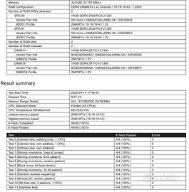 RAM laptop DDR4 SODIMM 2x16 GB 2666MHz - TOT 32GB Vendo banchi di RAM SK Hynix 2x 16GB 2RX8 PC4 - 2666V - SE1 - 11 La RAM è usata ed stata testata con MemTest - nessun errore riscontrato (vedi immagini allegate). In caso di ritiro a mano: zona provincia Milano est - Martesana. Disponibili i seguenti componenti: - RAM laptop SO-DIMM DDR3 da 2x8GB = tot 16GB - 1600 MHz - RAM laptop SO-DIMM DDR4 da 2x8GB = tot 16GB - 2133, 2400 MHz - RAM laptop SO-DIMM DDR4 da 2x16GB = tot 32GB - 2133, 2400, 2666 MHz - dischi SSD M.2 SATA da 256 e 512GB formato 2280 (attacco B+M keys) - dischi SSD M.2 NVMe da 512GB formato 2280 (attacco M keys) - dischi SATA 2.5'' da 240/250 e 500 GB