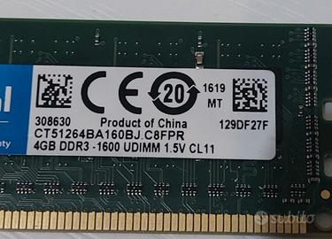 Causa rinnovo PC vendo 4 banchi di memoria RAM da 4gb ciascuno. caratteristiche in foto. Vendo in blocco a 30€ oppure a 10 € x banco.
