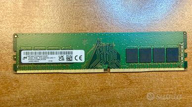 Vendo modulo di memoria RAM Micron da 16GB per PC desktop (fisso), perfettamente funzionante e testato. Ă un componente ideale per chi vuole potenziare il proprio computer per gaming, editing video o multitasking avanzato. đŚ DISPONIBILITĂ MULTIPLA: Dispongo di vari moduli moduli identici stessa marca, modello Specifiche Tecniche (estratte dall'etichetta): ⢠Marca: Micron ⢠CapacitĂ : 16 GB ⢠Modello: MTA8ATF2G64AZ-3G2E1 ⢠Tipo: DDR4 SDRAM (PC4) ⢠VelocitĂ : 3200 MHz (PC4-3200AA) ⢠Configurazione: 1RX8 (Single Rank) ⢠Formato: UDIMM (288-pin) per PC Desktop Condizioni: ⢠Stato: Usato, ma in condizioni eccellenti. ⢠Origine: Smontato da workstation/PC preassemblato per upgrade. ⢠CompatibilitĂ : Funziona con la stragrande maggioranza delle schede madri DDR4 (Intel e AMD). Si consiglia comunque di verificare la compatibilitĂ del proprio sistema prima dell'acquisto.