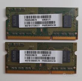 Memoria RAM per Notebook nr 2 moduli da 2GB cadauno Marca: SAMSUNG Tipo: DDR3 SDRAM Fattore di forma: SO-DIMM