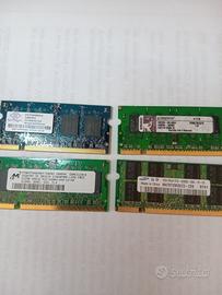 N° 8 Ram ddr2 da 1 gb, +1 da 2 gb , +5 Ram mini ddr2 da 1 gb , + 4 Ram ddr3 da 1 gb , + 4 Ram ddr2 da 1gb e 512mb, per portatili.