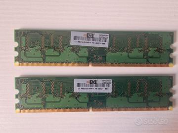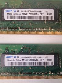 Coppia di RAM Samsung DDR2 PC2-6400 800Mhz 2GB (2x1GB) M378T2863QZS-CF7 Disponibile per consegna a mano o spedizione veloce.