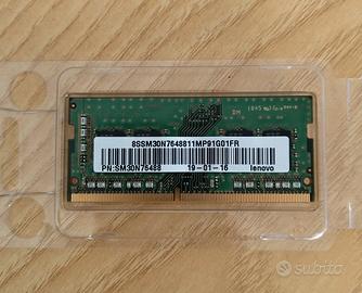 RAM DDR4 8gb 2666mhz Samsung (proveniente da PC Lenovo) sodimm per notebook e pc desktop All In One compatibili. Memoria perfettamente funzionante, smontata per upgrade