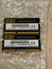 La RAM mostrata nella foto è un kit Corsair Vengeance DDR3, modello CMSX8GX3M2A1600C9.