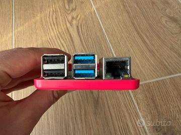Raspberry Pi 4 Model B in buone condizioni, ideale per progetti di domotica, media center, server domestici o retro-gaming. La scheda è già equipaggiata con dissipatori di calore in alluminio montati sui componenti principali per garantire prestazioni stabili e una gestione termica ottimale. Il kit include tutto il necessario per la messa in funzione: - Scheda Raspberry Pi 4 Model B. - Case protettivo rigido. - Scheda di memoria MicroSD SanDisk Ultra da 32GB (Classe 10, A1) con relativo adattatore SD. - Cavo video dedicato da Micro-HDMI a HDMI. Caratteristiche tecniche principali: - Porte: 2 porte USB 3.0 (blu) e 2 porte USB 2.0 (nere). - Rete: Porta Gigabit Ethernet e Wi-Fi integrato. - Video: Doppia uscita Micro-HDMI con supporto alla risoluzione 4K. - Alimentazione: Ingresso USB-C. - Audio: Jack da 3.5 mm per audio/video analogico. Il dispositivo è usato con normali segni di utilizzo. Vendo pertanto nello stato in cui si trova, completa di quanto visibile in foto.