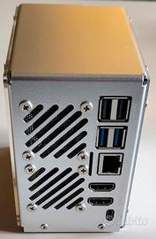 Raspberry Pi 5 8Gb Ram, con bellissimo case Pironman 5, comprensivo di dissipatore, ventole rgb, adattatore per ssd, display oled e scheda di espansione con doppia uscita hdmi. Case molto bello in alluminio e plexiglass.