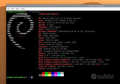Vendo Raspberry pi 5 Kit NVMe con 8 GB RAM wifi+ethernet, case metallico, tutto già montato. Il setup include anche un SSD Lexar EQ790 da 2TB, assemblato già con pasta termica per il calore Arctic. Incluso scatola originale del kit, con viti di riserva, cavo mini HDMI > HDMI, micro SD 64gb con adattatore USB. Acquistato a novembre 2025 su Amazon, allego fatture per garanzia. Vendo per inutilizzo.
