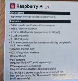 Vendo come da foto Raspberry Pi 5 completo di case e alimentatore senza scheda microsd tutto con imballo originale.