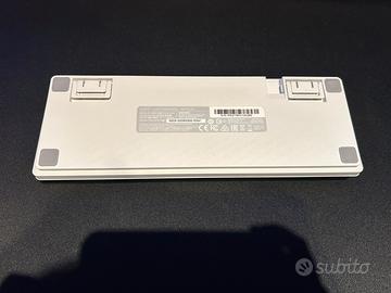 Razer hustman mini in colorazione bianca con switch viola. Piccolo difetto al tasto ESC manca il keycap, ma è completamente funzionante.