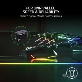 Dotato di sensore ottico Razer Focus+ da 26.000 DPI reali, garantisce massima precisione e risposta istantanea per eSport, FPS e giochi competitivi.