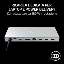 Ricarica dedicata del laptop e Power Delivery - con adattatore da 180 W incluso: Con l'adattatore da 180 W incluso, è possibile ricaricare il laptop per 100 W e contemporaneamente alimentare tutti gli altri dispositivi collegati, per essere sempre pronti all'uso.