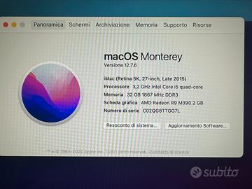 Vendo Imac Retina 5K, 27-inch, Late 2015 in perfette condizioni, fusion drive, tastiera come da foto, ulteriore Magic Keybord ed altra tastiera con cavo non italiana.