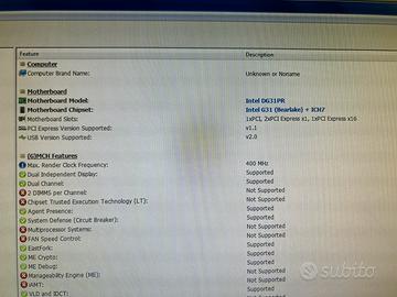 Scheda madre Intel DG31PR completa di CPU e 4gb DDR2 + Processore Intel Core 2 Duo E2180 2ghz + pannello posteriore. Fornisco disco sata 150gb con windows 7 home. Funzionante al 100%